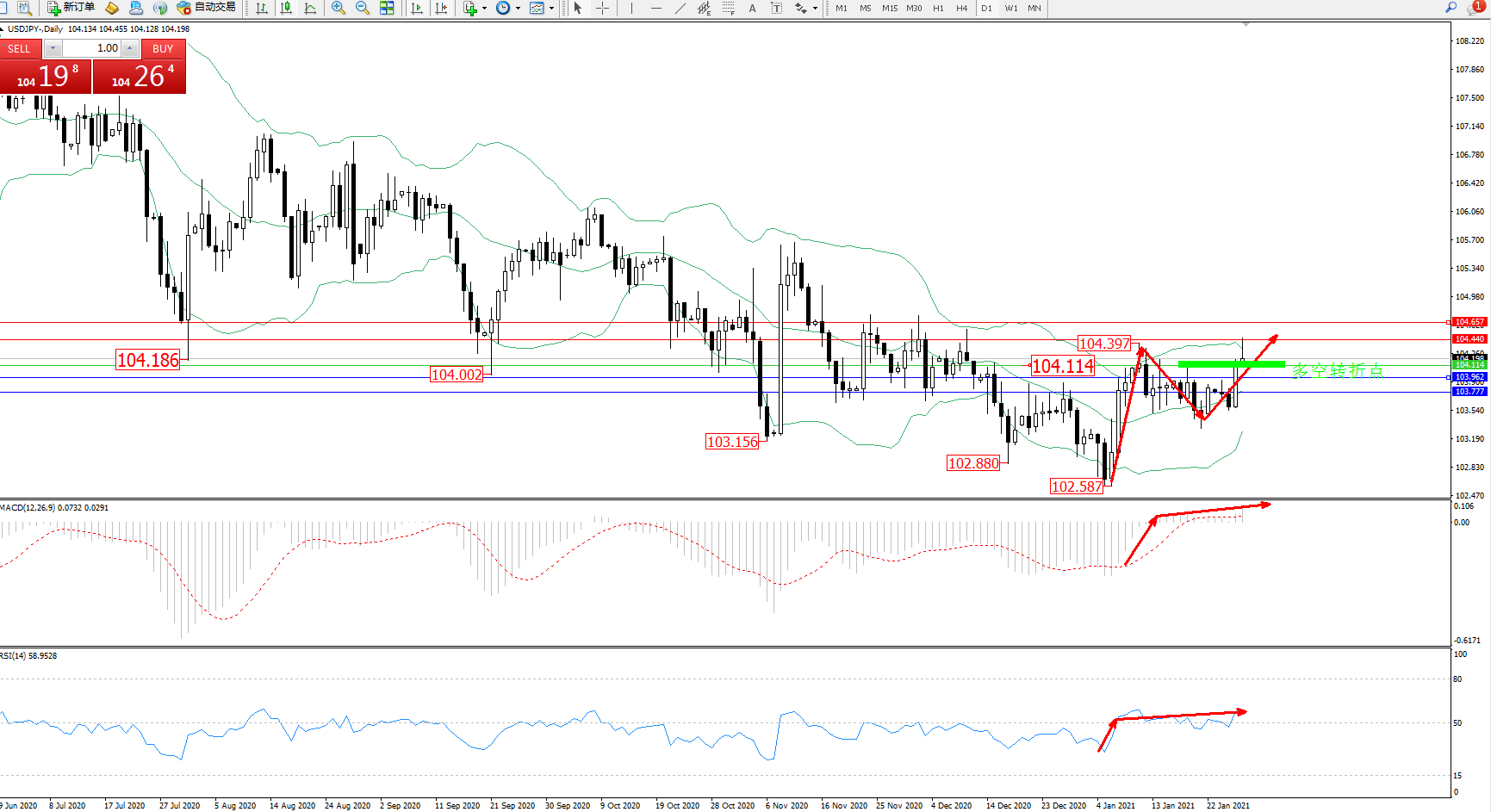 美元兑日元涨0.12%至104.24;盘中涨至12月10日以来最高水平104.46。主要受到美元指数的影响。美联储对全球第一大经济体的复苏步伐表示担忧,这进一步支撑美元走强。美联储维持关键利率和每月购债规模不变,并表示最近几个月美国经济活动和就业服务步伐有所放缓。在政策指导或刺激前景方面,我们没有获得更多资讯,因此风险偏好受到压制,且推高了美元,日圆难以幸免。据日本共同社:日本因疫情推出19.18万亿日元的额外预算,日本将于2月4日发售9000亿日元30年期债券,将于今日发售3万亿日元收益率0.100%的两年期债券,美国公布的四季度GDP初值不及预期,2020全年GDP增速更是创75年新低。不过鉴于新冠疫情重新抬头,市场对此并不感到意外。