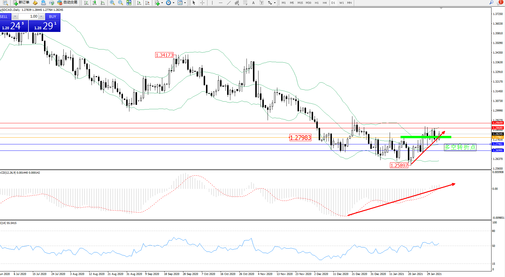 交易策略:1.27983上方看涨,目标1.28680、1.29049