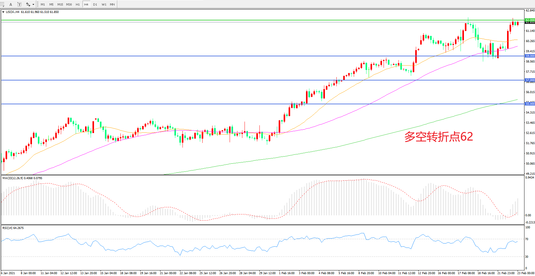 多空转折点:62.00