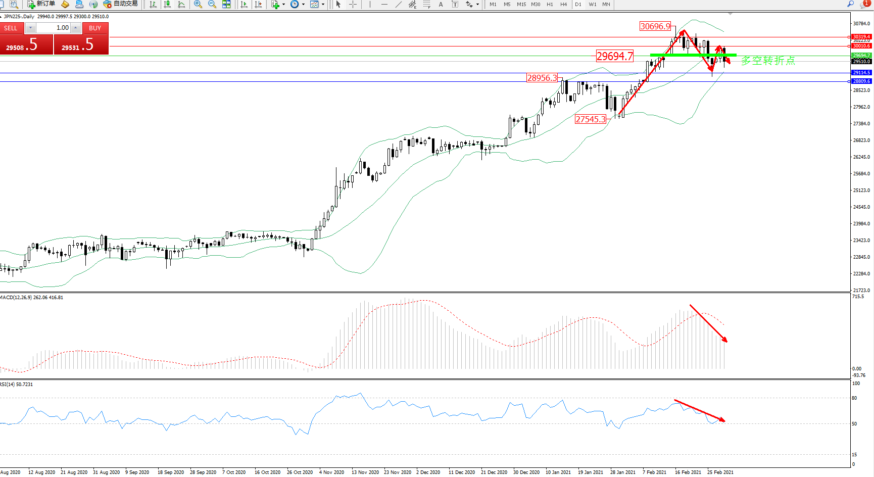 日经225指数3月2日(周二)收盘下跌239.50点,跌幅0.81%,报29424.00点。在股市没有出现崩塌式下跌的状况下,仅仅债市的价值回归交易,也不足以推动美联储立即入市干预。基于疫苗注射进展相较顺利扭转疫情局势,经济复苏良好,而美联储不担心经济过热从未停止踩宽松的油门之前,目前美元的反弹是一场熊市调整,跌多了会涨,但长期跌是大局所趋。近日大幅波动的美债收益率目前持稳,10年期美债收益率报1.406%,日本众议院全体会议以多数赞成票通过了2021财年预算案,该预算案规模达106.6万亿日元(约合6.5万亿元人民币),创历史新高。而立宪民主党等在野党则主张“疫情对策不够充分”,对预算案提出了反对意见。日本东京新增232例新冠肺炎确诊病例。
