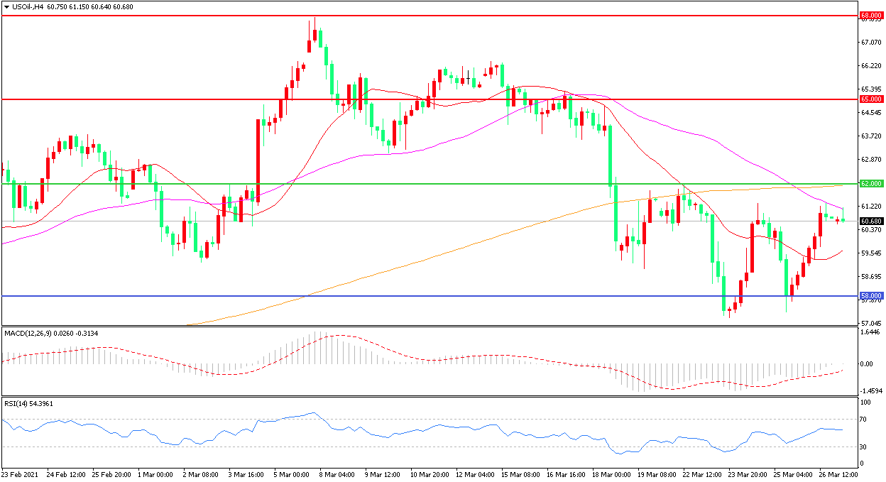 4小时图看,油价回踩58美元后再度拉升,整体表现有所回暖,55周期均线成为上方阻力,21周期均线形成下方支撑,MACD绿柱减少,RSI指标走平,日内延续震荡概率较大。