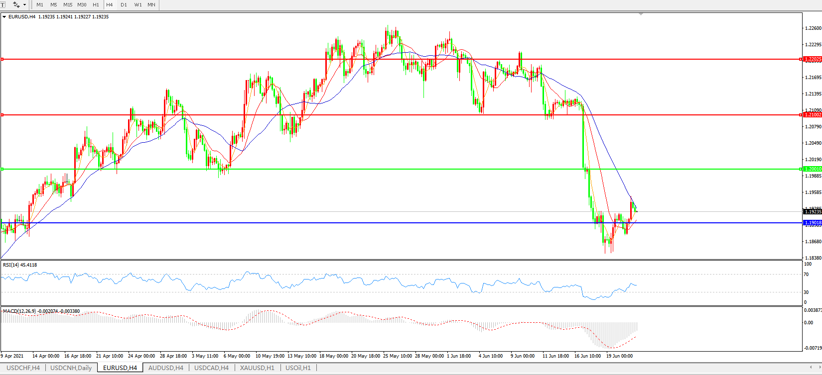 欧元兑美元EURUSD   4小时图: