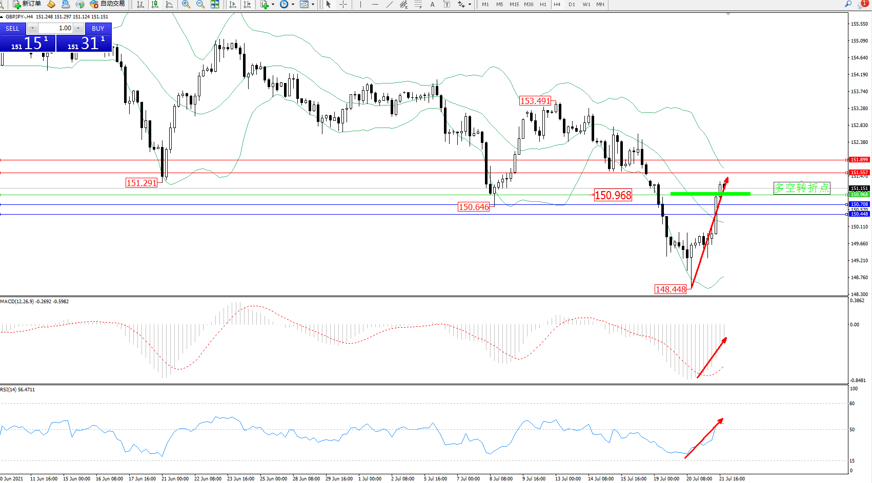 技术点评:低位多头动力强势拉升至布林带指标中上轨区间震荡,多头动力有进一步向上移动态势,布林带指标呈收口走势持续中,MACD指标处于空头区域低位持续震荡上扬,RSI指标处于空头区域维持震荡拉升至50均衡线上方徘徊;