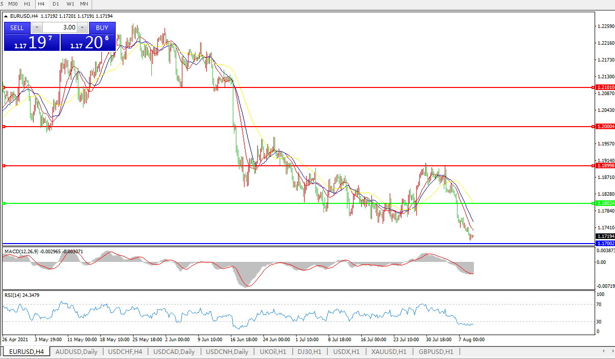 交易策略:1.1800下方看跌,目标1.1700、1.1600