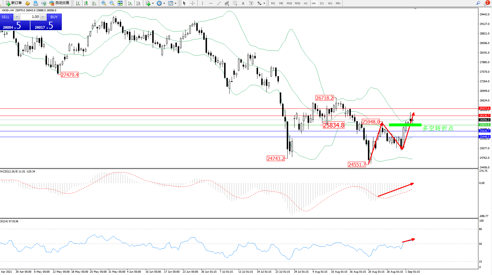技术点评:低位多头动力呈阶梯式持续震荡上扬,触及布林带指标上轨附近节点后开始短暂震荡,多头动力有进一步上移迹象,布林带指标呈收口走势后开始徘徊平移,有缓慢张口迹象,MACD指标处于空头区域低位震荡缓慢上移,RSI指标维持50均衡线下方弱势震荡后多头动力强势拉升上扬进入多头区域徘徊;