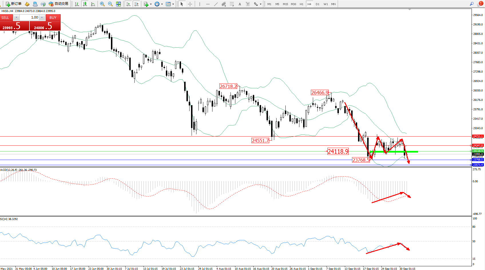 香港恒生指数10月4日(周一)收盘下跌539.27点,跌幅2.19%,报24036.37点;A股假期休市,港股今日开市集体大跌,市场情绪表现低落。恒生科技指数跌2.09%报5973点。生物医药股全天维持跌势,为市场表现最差的板块,开拓药业大跌超25%,复星医药大跌19%,石四药集团等跌幅均居港股前列;大型科技股阿里巴巴、小米、网易、美团皆跌超3%,腾讯跌1%。今日大市成交额为1132亿港元。目前疫苗股的大跌一是情绪上的影响,不排除有一定程度的错杀;另外投资者还需注意到的是,新冠疫苗的全球产能过剩问题或许也是疫苗股大跌的原因之一。