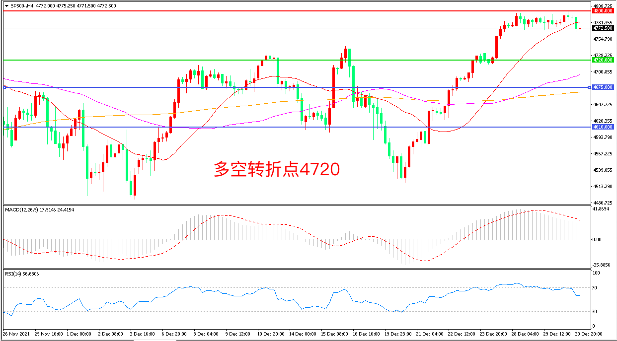 交易策略:在4720.00之上看涨,目标4800.00 4880.00