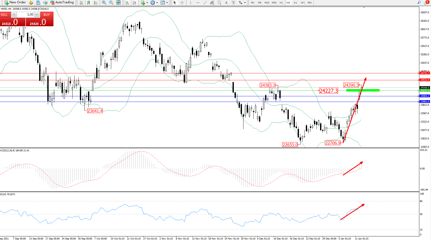 香港恒生指数1月12日(周三)收盘上涨663.11点,涨幅2.79%,报24402.17点;港股三大指数呈单边上涨行情,科技股领衔大市上扬,致恒生科技指数大涨4.99%,创2021年10月7日以来最大单日涨幅,重回24000点上方。权重科技股全线爆发,京东飙涨11%,美团大涨超9%,网易、快手、百度涨超6%,阿里巴巴、腾讯助力恒指上涨近200点;香港交易所今天(星期三)宣布与深交所签署一项战略合作补充协议,以加强两地市场互联互通,共同推进粤港澳大湾区建设。根据这项补充协议,香港交易所与深交所将建立更紧密的全方位合作关系,进一步推动香港和中国内地资本市场的协同发展。两家交易所将定期就沪深港通发展、指数及衍生产品的开发、跨境监管动态等相关话题合作举办论坛、研讨会等市场推广活动。