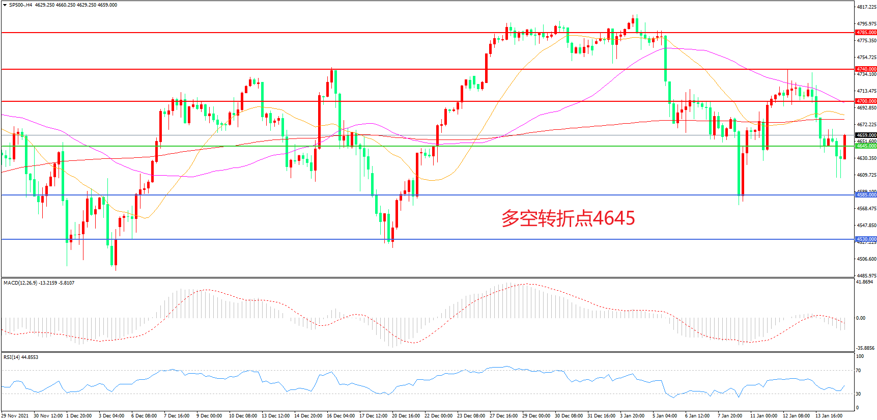 上周五(1月14日),通胀成为欧美央行关注焦点,市场对央行提速收紧货币的担忧加剧,标普500延续低位震荡,收报4659点。随着银行拉开业绩期序幕,许多投资者怀疑,整体盈利是否会继续带来巨大的惊喜,从而促使分析师像去年一样疯狂上修其数据,鉴于利率上升会给股市估值带来压力,盈利有可能成为市场维持向上趋势所能指望的全部动力。