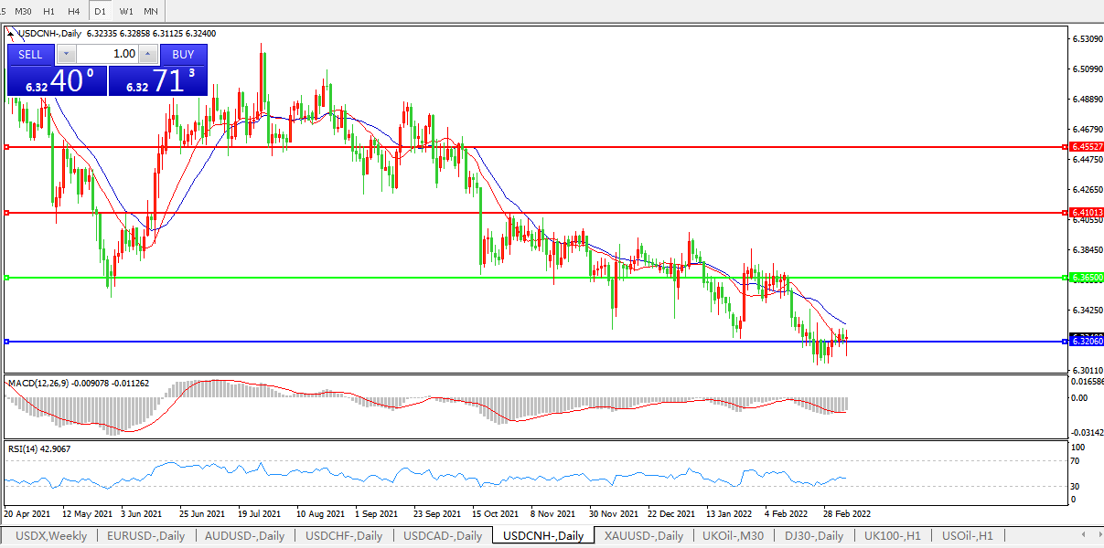 备选策略:在6.3650之上,看涨,目标价位为6.4100,然后为6.4550。
