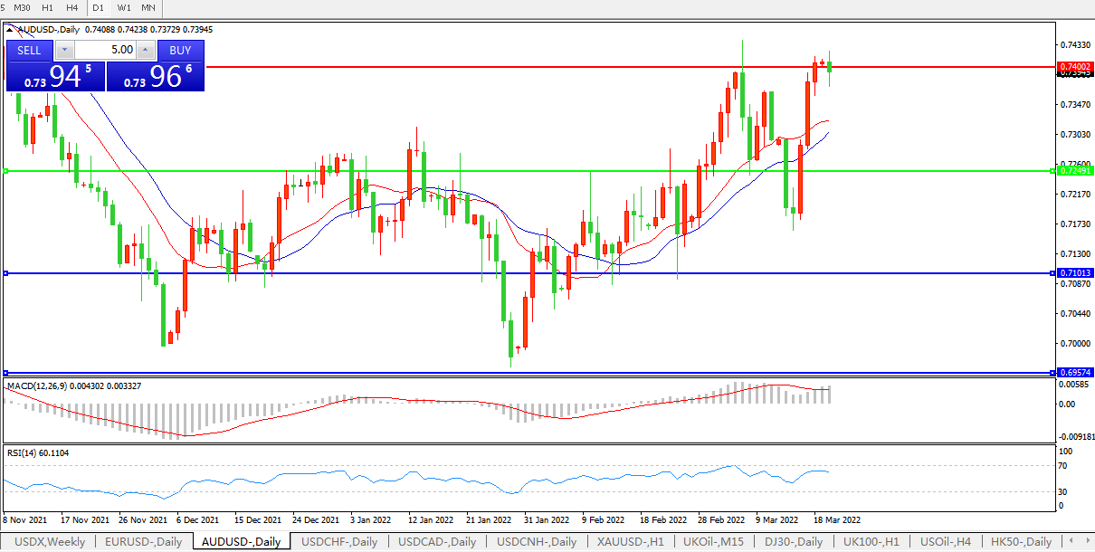 交易策略:0.7250上方看涨,目标0.7400、0.7550