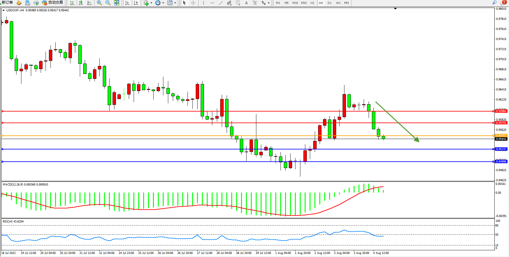 交易策略:0.95502下方看跌,目标0.95237、0.94990