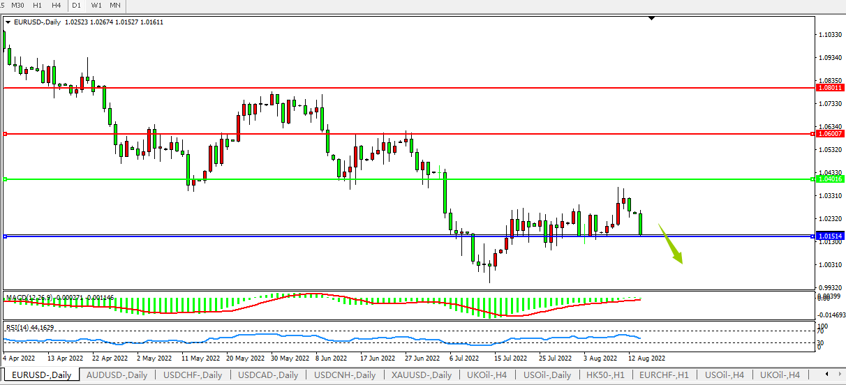 交易策略:1.0400下方看跌,目标1.0150、1.0000