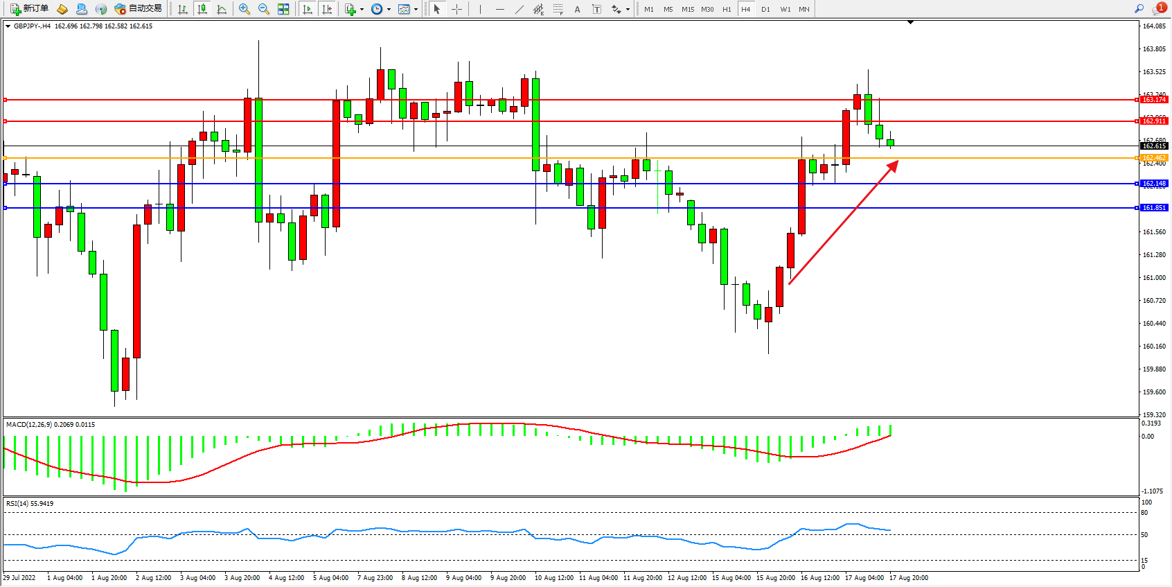 英镑兑日圆维持162.615附近震荡,英国的通胀率达到了两位数,7月份的年度数据超过了10%,超出了预期。虽然这可能会让英国央行继续收紧货币政策,但这也是消费者状况恶化的信号。