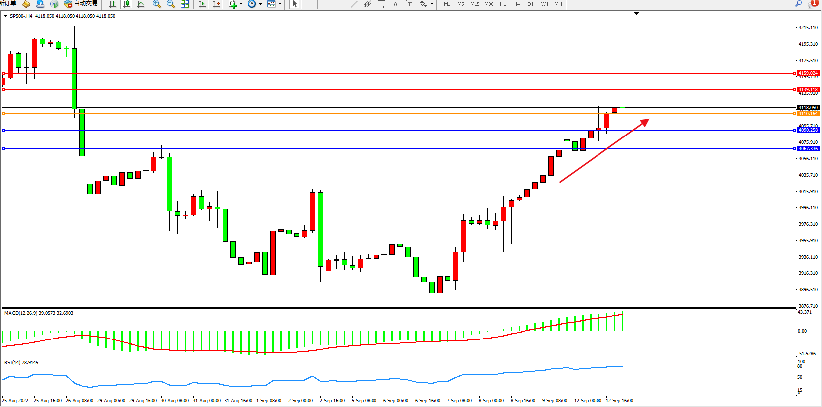 标普500指数9月12日(周一)收盘上涨44.19点,涨幅1.09%,报4111.55点;股票和金融市场没有面临重大的市场焦虑。美国主要股指的短期下跌趋势已经停止。交易员和投资者正在等待周二公布的美国最新通胀报告。预计8月份CPI将同比增长8.0%,7月份为8.5%。