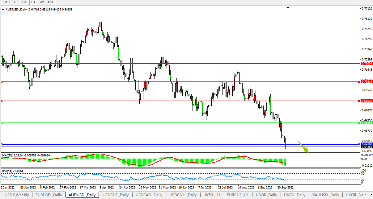 日线图看:短期汇价继续加速下行,MACD运行于0轴下方且量能放量RSI继续走低,预计汇价大概率将在反弹后进一步下行