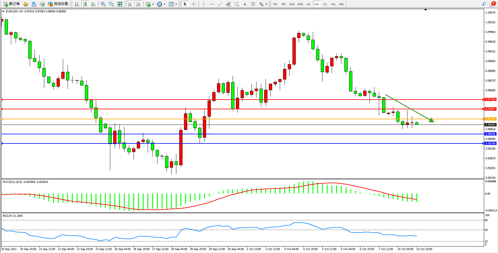 欧元兑美元维持0.96950附近震荡,油价攀升和地缘政治紧张局势也令人对经济增长感到担忧,对欧洲能源进口国的货币造成了压力。只有美联储政策转向,以及/或其他对风险资产提供持续支持的因素出现,欧元或许方有望扳转当前的颓势。