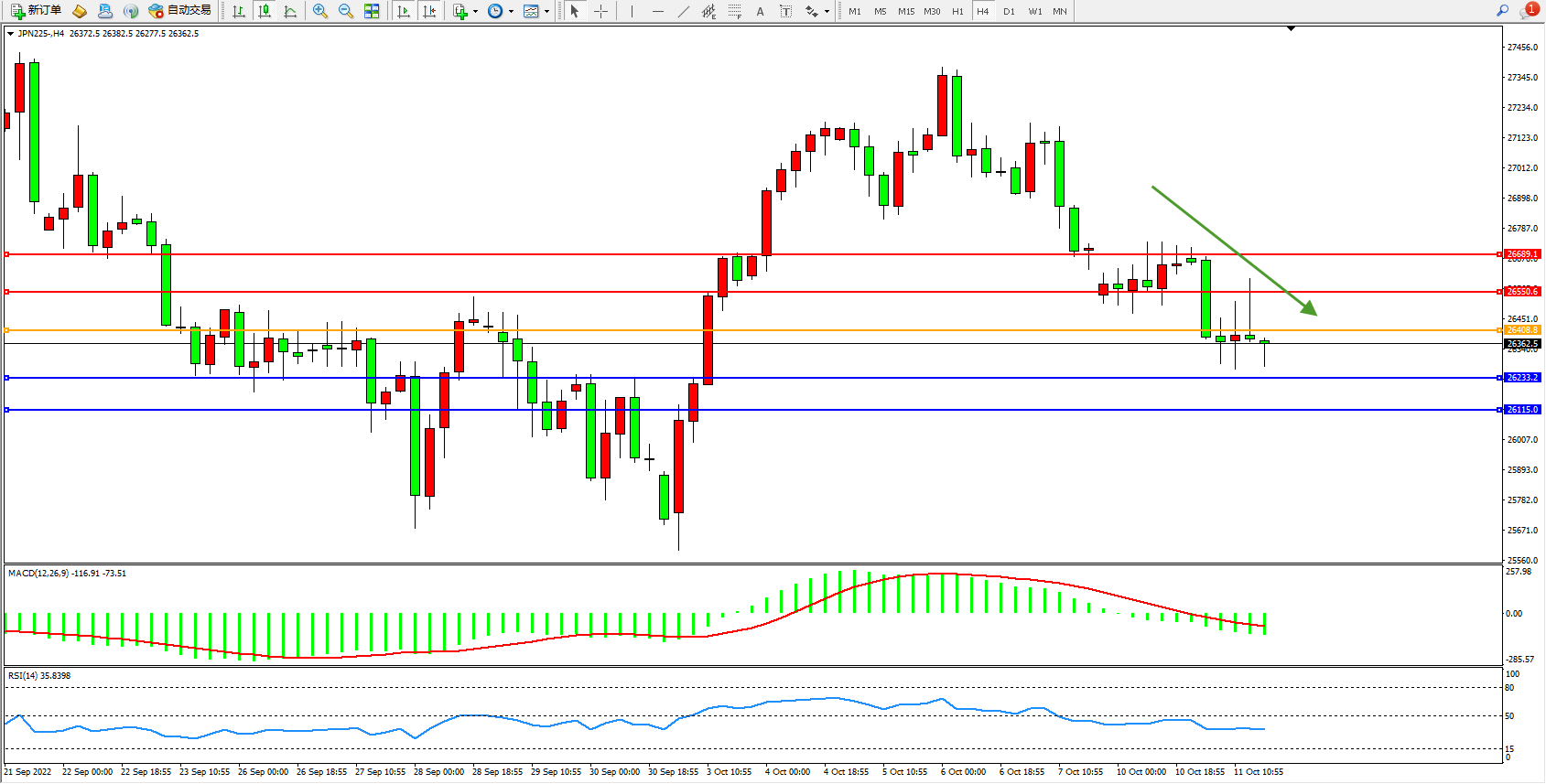 日经225指数10月11日(周二)收盘下跌716.61点,跌幅2.64%,报26399.50点。根据日本周二公布的国际收支数据,日本投资者8月份成为美国主权债的净买家,为10个月来首次。在之前9个月里净卖出15.7万亿日元美国主权债后,日本的基金8月份买入了5650亿日元。
