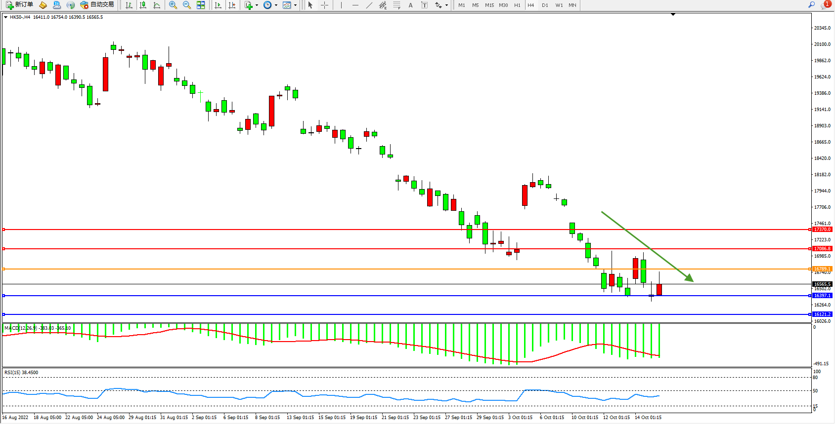 恒指HK50 4小时图