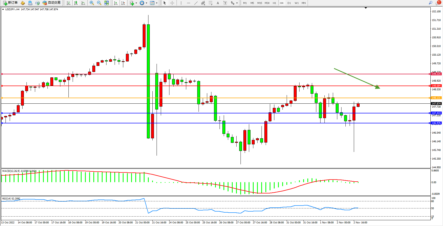 美元兑日圆维持147.874附近震荡,日本央行可以持续实现2%的通胀率目标。由于日元跌至32年低点,继续推高进口成本,日本9月核心通胀率加速至3.0%创八年新高,这挑战了央行维持超宽松政策立场的决心。