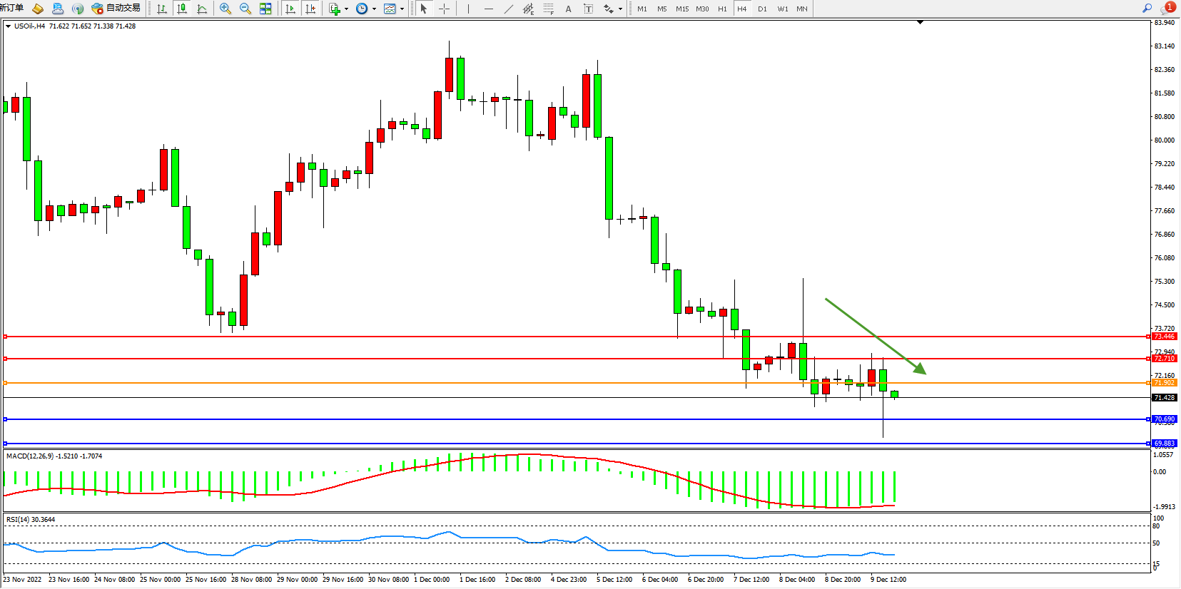 原油维持71.428附近震荡,欧盟和美国都同意有45天的过渡,期间各方仍然可以合法购买原油,前提是在2023年1月19日之前交付到最终目的地。 市场相信在这段过渡期内,俄罗斯与欧盟G7双方将彼此达成默契,都希望平稳过渡。