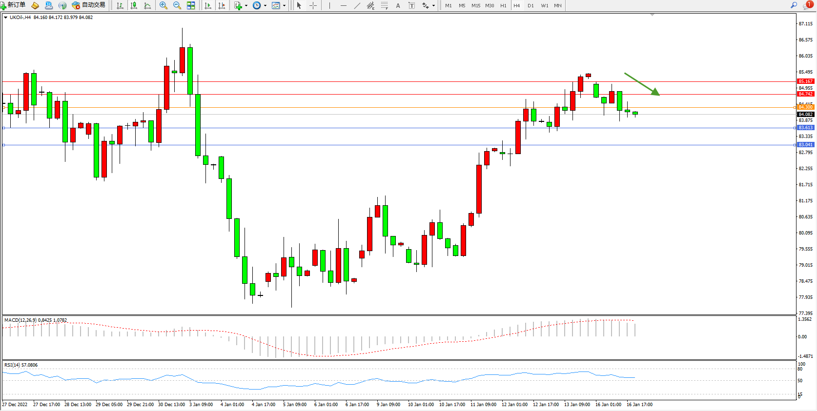 布油UKOil——4小时K线图显示: