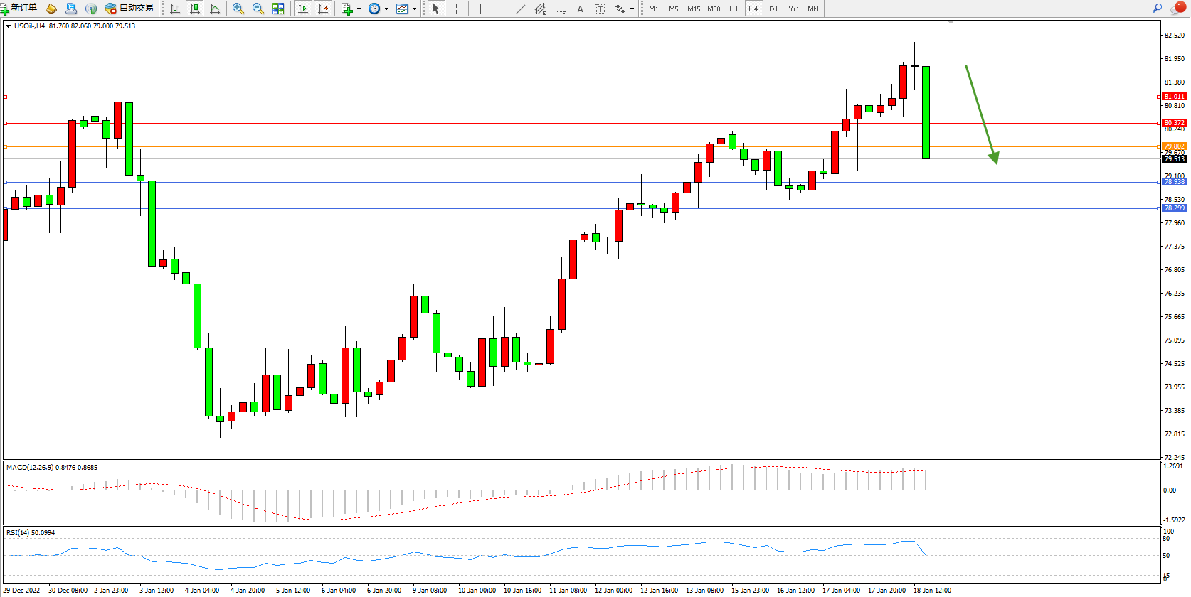 原油USOil——4小时K线图显示: