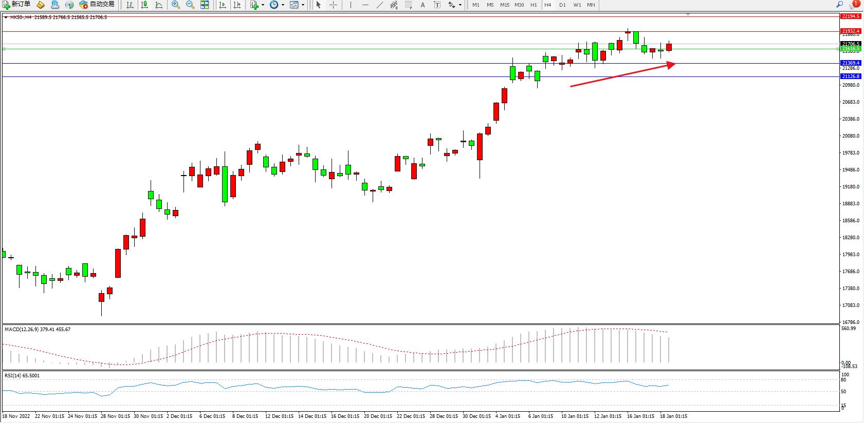 恒指HK50 4小时图