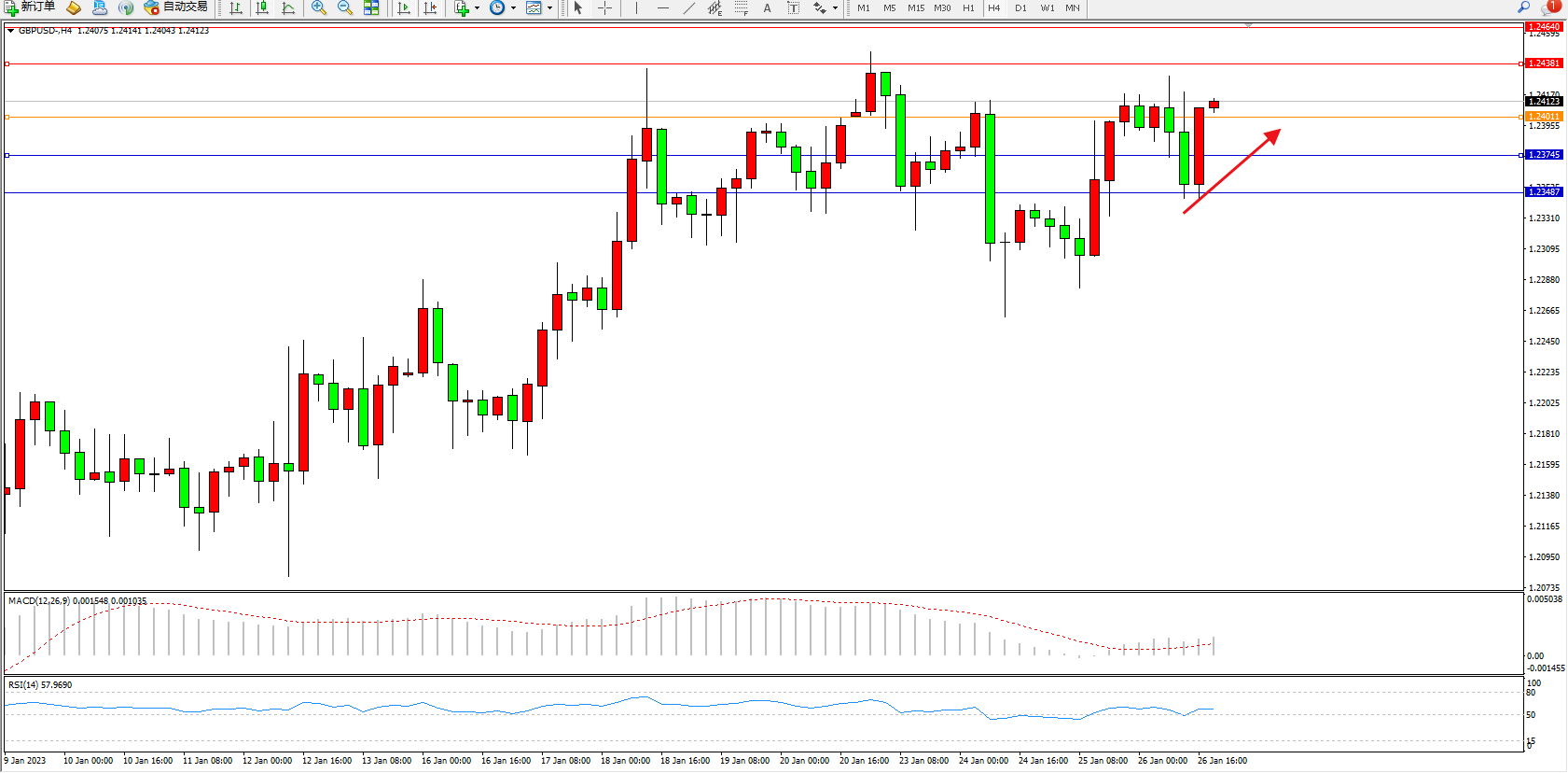 备选策略:1.24011下方看跌,目标1.23745、1.23487