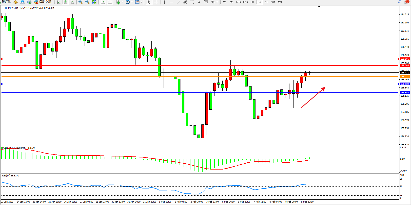 4小时图看:多头动力维持震荡上扬,短期看涨情绪涌现,市场多头动力维持震荡向上移动中,MACD指标处于0轴线附近弱势整理,RSI指标处于50均衡线上側弱势徘徊中;
