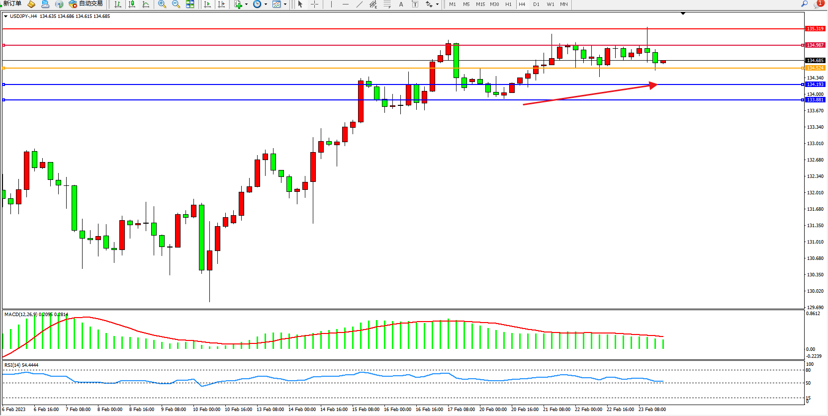 交易策略:134.524上方看涨,目标134.987、135.319