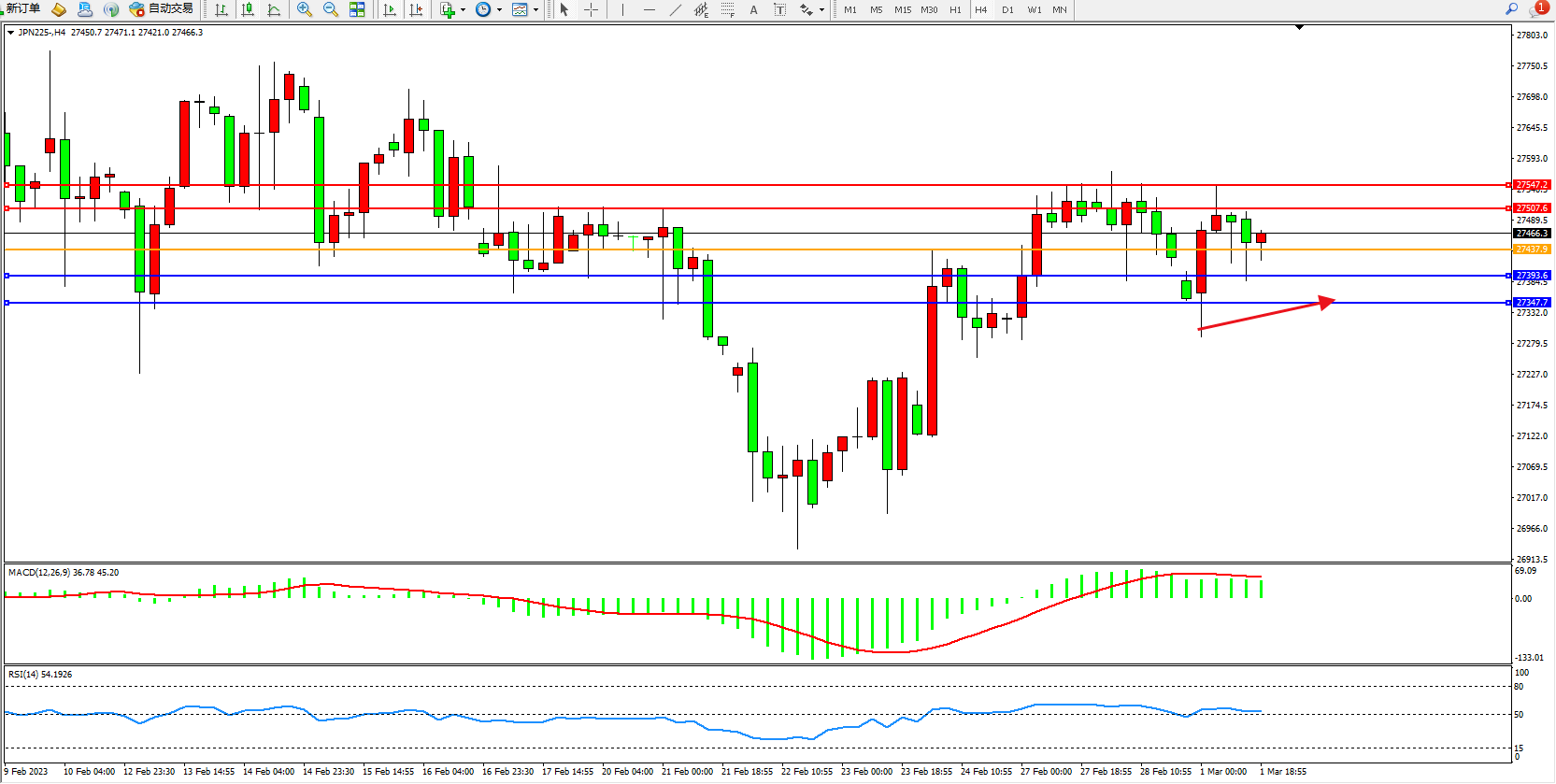 日经225指数3月1日(周三)收盘上涨60.94点,涨幅0.22%,报27506.50点。日本央行审议委员中川顺子:我们的目标是积极的经济周期并伴随着更高的工资,希望看到市场有更多12月政策调整带来的效果,在衡量价格趋势时必须看到各种数据。