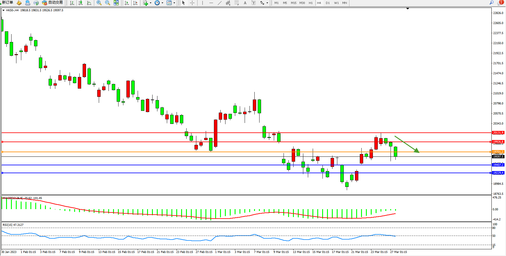 香港恒生指数3月27日(周一)收盘下跌347.99点,跌幅1.75%,报19567.69点;港股午后再度低迷,三大指数尾盘跌幅加大,恒指盘中一度转涨,最终收跌1.75%下挫近350点,恒生科技指数跌2.82%险守4100点。盘面上,受马云回国影响,阿里巴巴曾一度转涨至5%,中国建材绩后跌超8%表现最差,南下资金逆势净流入57.82亿港元,大市成交额为1271亿港元。