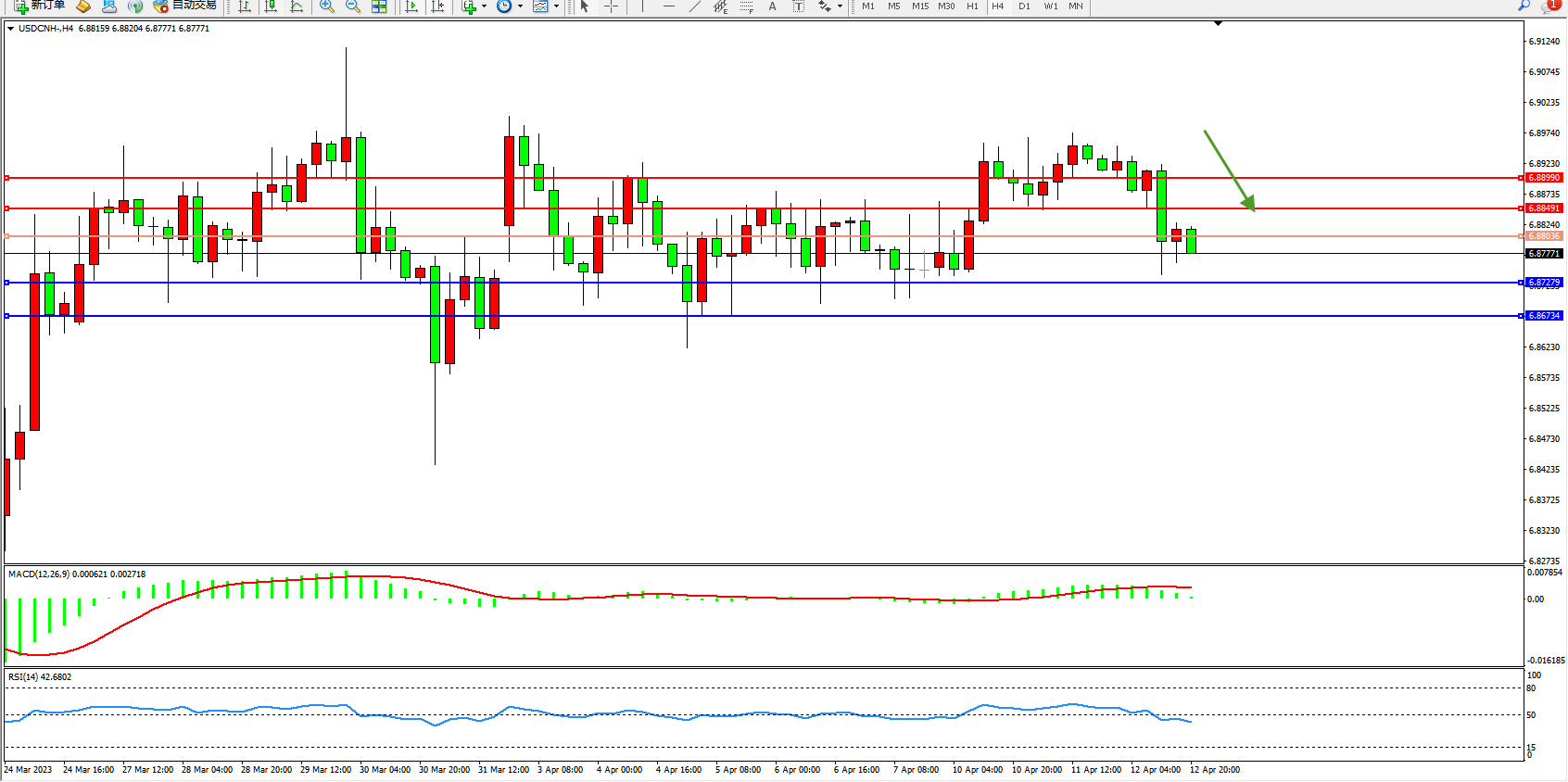 备选策略:6.88036上方看涨,目标6.88491 6.88990
