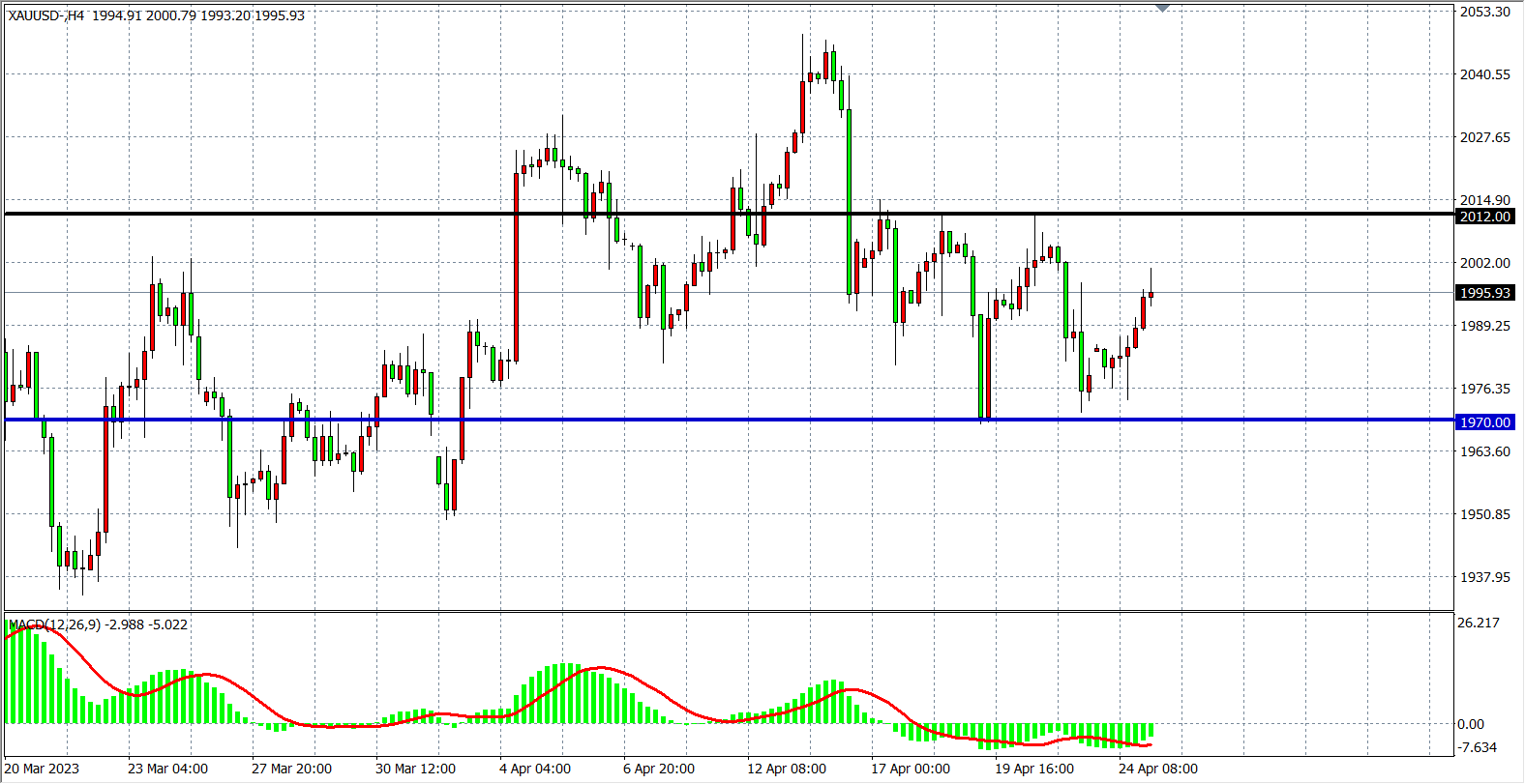 周一(4月24日)公布的美国4月达拉斯联储商业活动指数和制造业产出指数均不及预期,引发了人们对美国经济放缓的担忧,美指美债收益率走低,现货黄金盘中一度重回1990美元,最终收涨0.32%。展望后市,经济放缓担忧抑制加息前景的升温,相应地阻碍了后期美指的上升,对黄金起到积极作用。