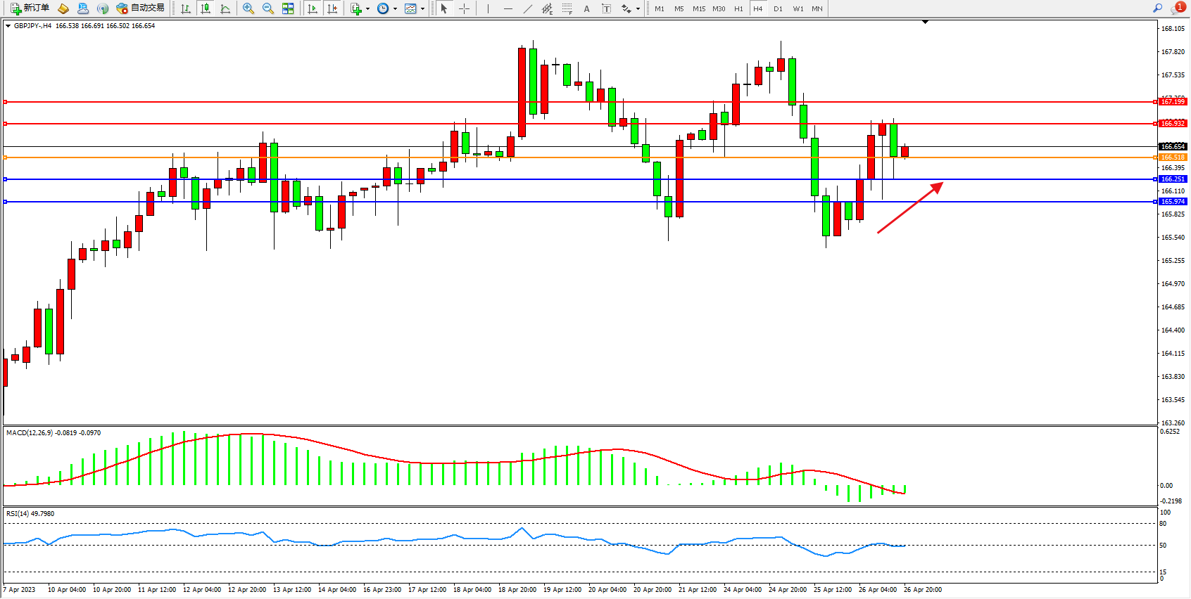 交易策略:166.518上方看涨,目标166.932 167.199