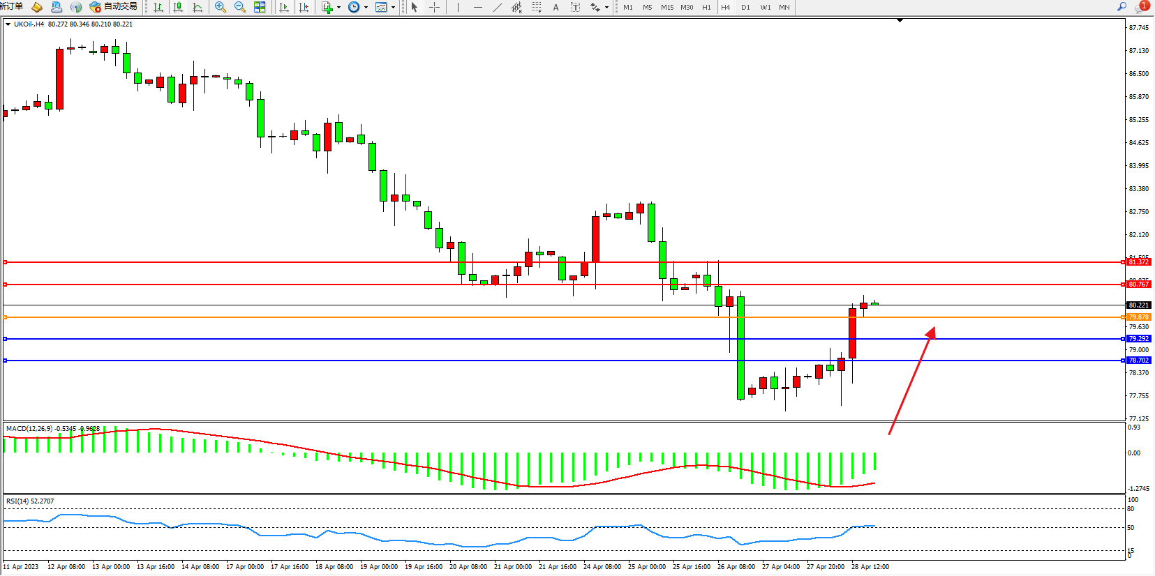 布油UKOil——4小时K线图显示: