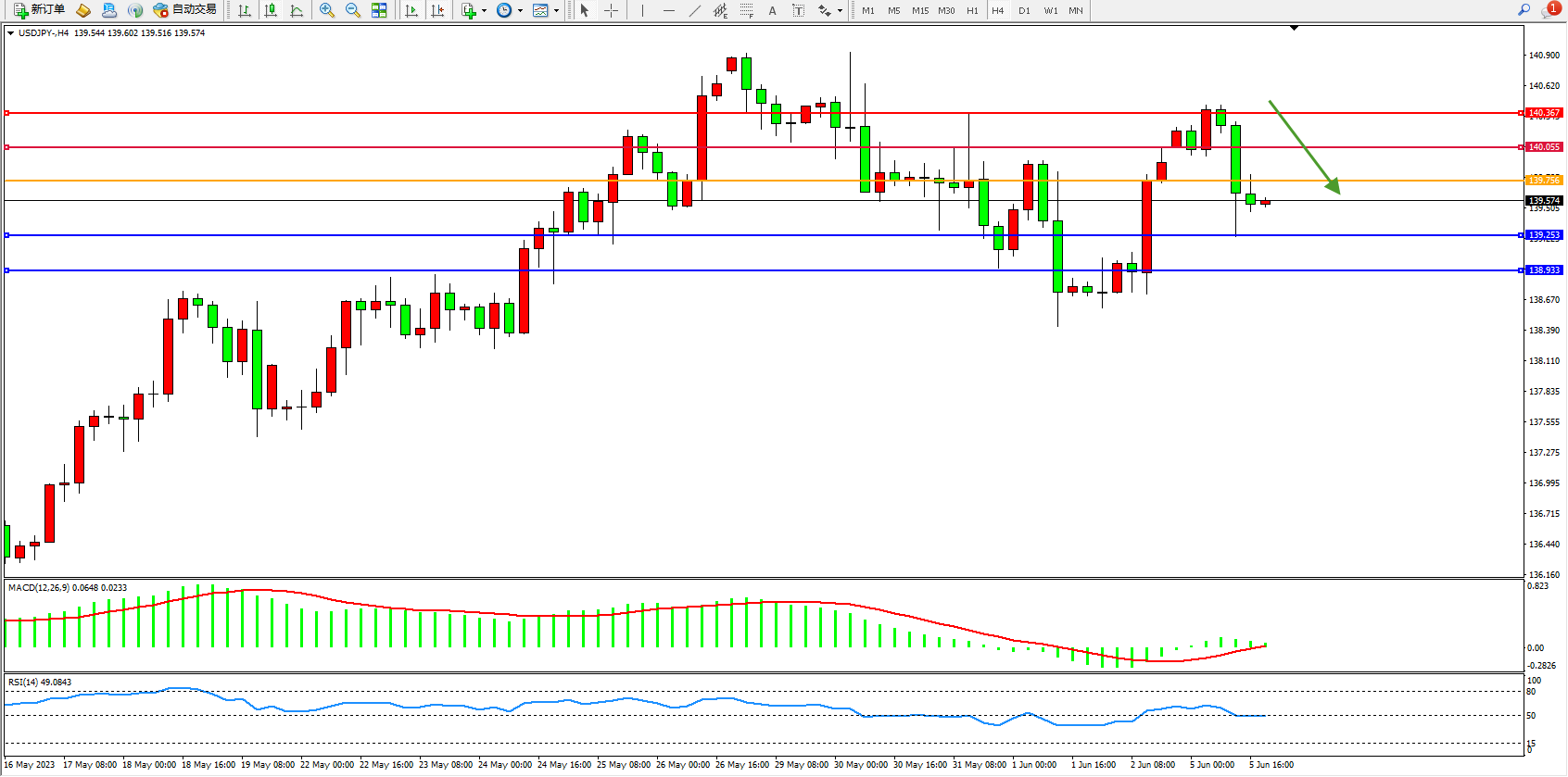 美元兑日圆维持139.756附近震荡,支持日的最佳方法是日本央行要改变其货币政策,然而日本央行目前离这样做似乎还有很长的路要走。目前若要日回强,似乎也只能冀望美联储6月份率先按下加息停止键了。