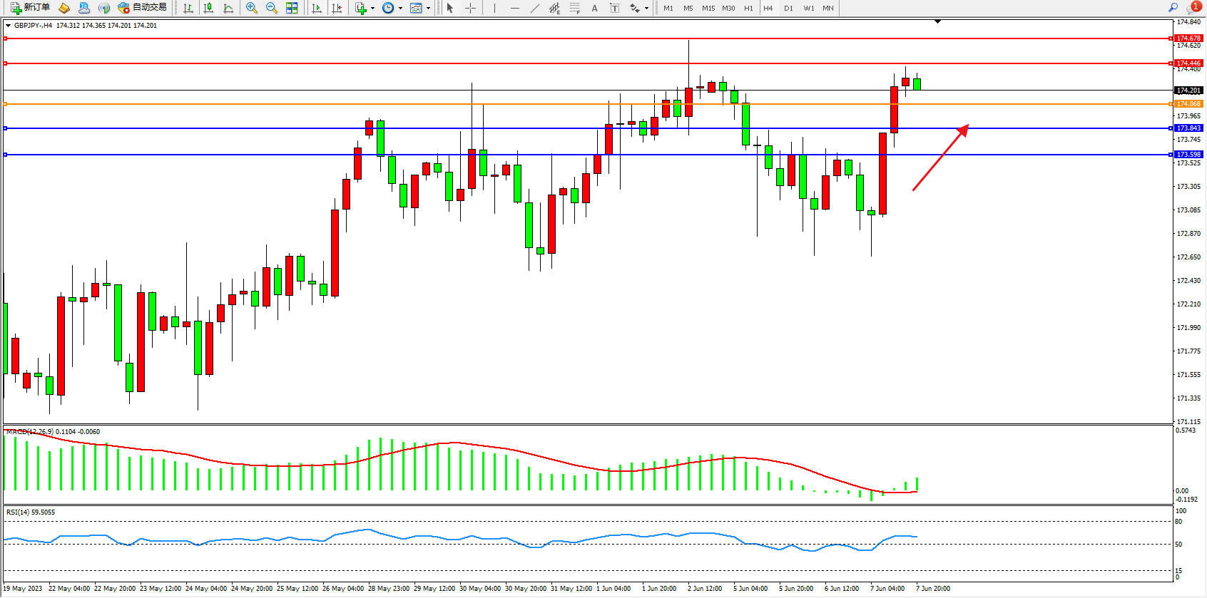 阻力位:174.446 174.678