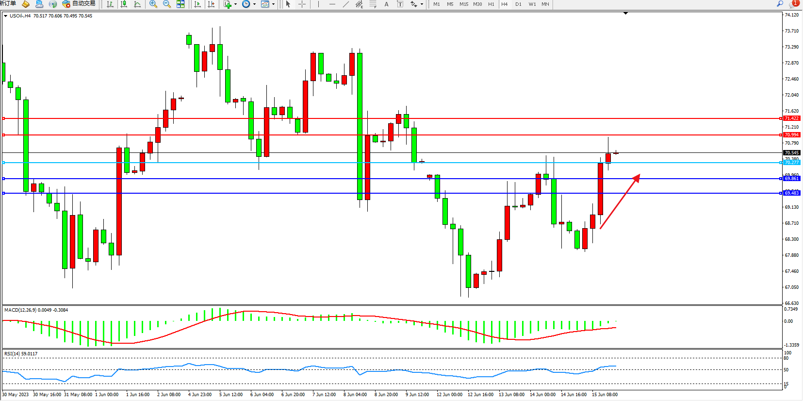 原油维持70.545附近震荡,数据显示世界最大原油进口国中国的炼油厂开工量激增。但美联储预计还将继续加息,这限制了油价涨势。机构认为,全球供应增长抵消了创纪录的需求增长,降低了价格飙升风险。