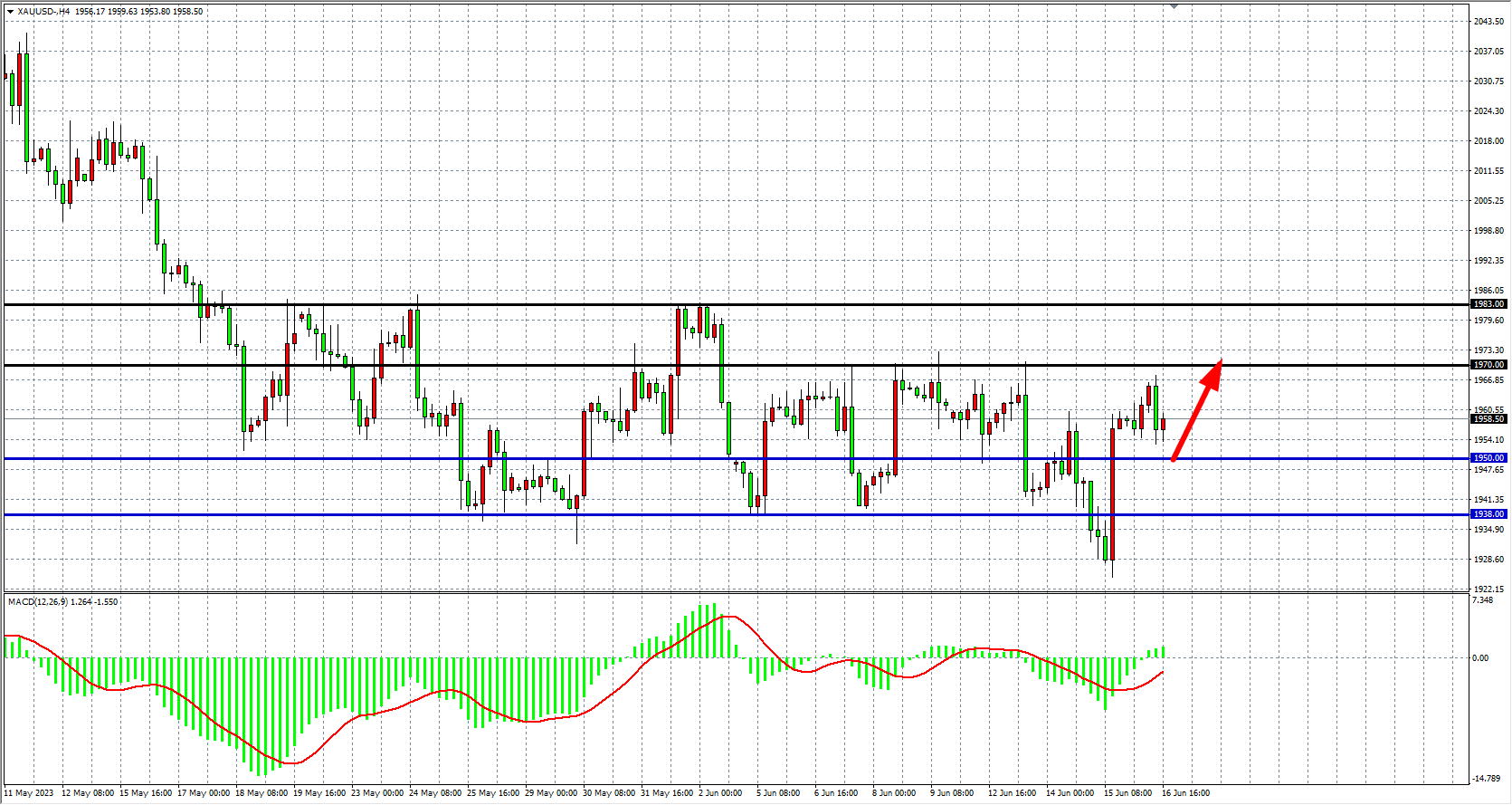 现货黄金XAUUSD 四小时图