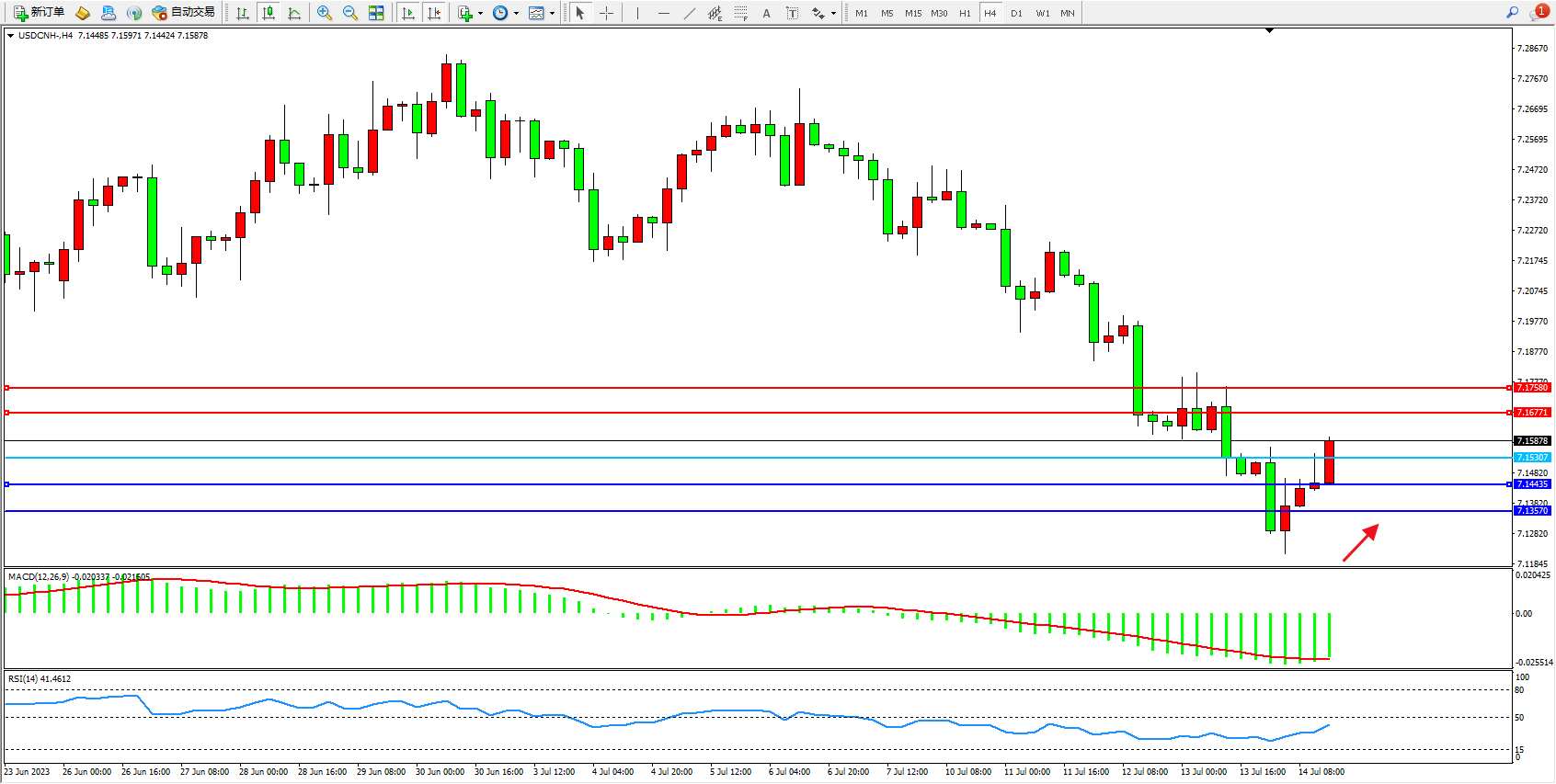 备选策略:7.15307下方看跌,目标7.14435  7.13570
