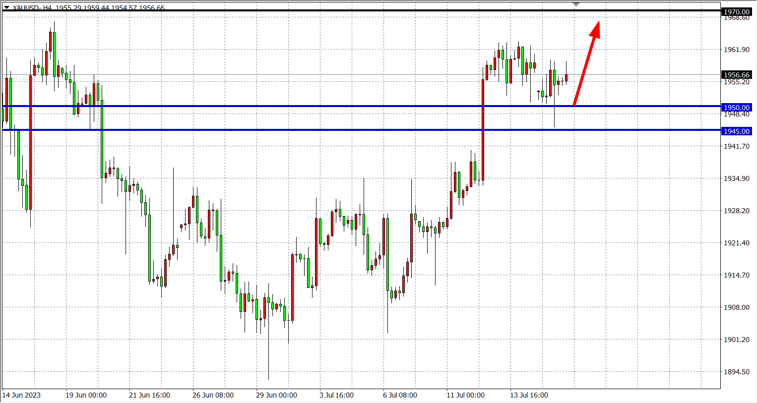 现货黄金XAUUSD 四小时图
