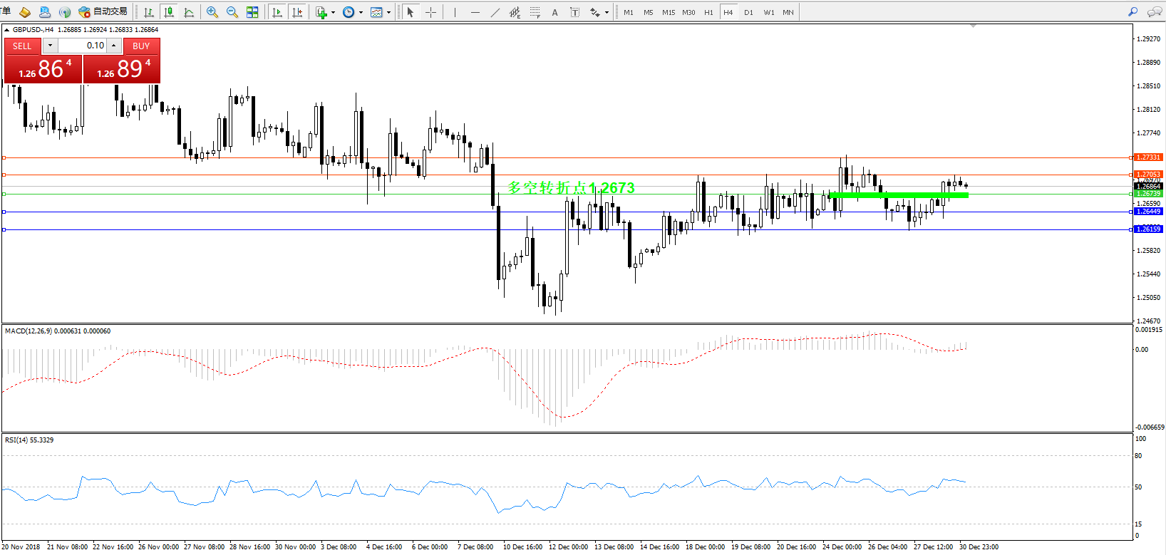 备选策略:1.2673下方看跌,目标1.26441.2615