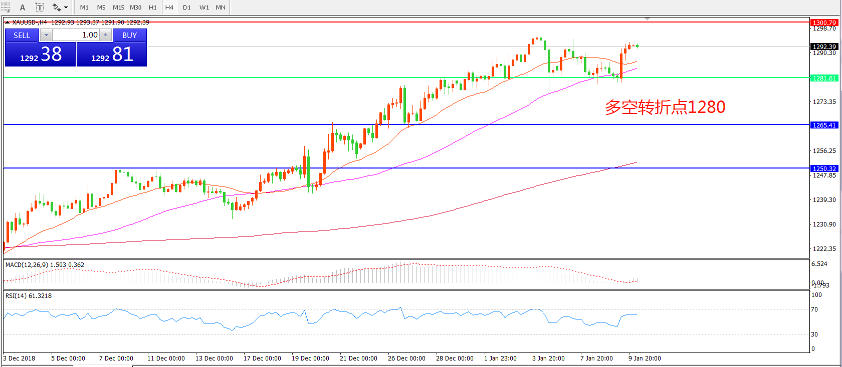 交易策略:在1280.00之上看涨,目标1300.00 1319.00