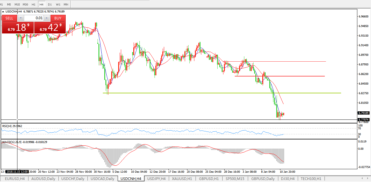 交易策略: 在6.8242之下,看跌,目标价位为6.7800,然后为 6.7564 。