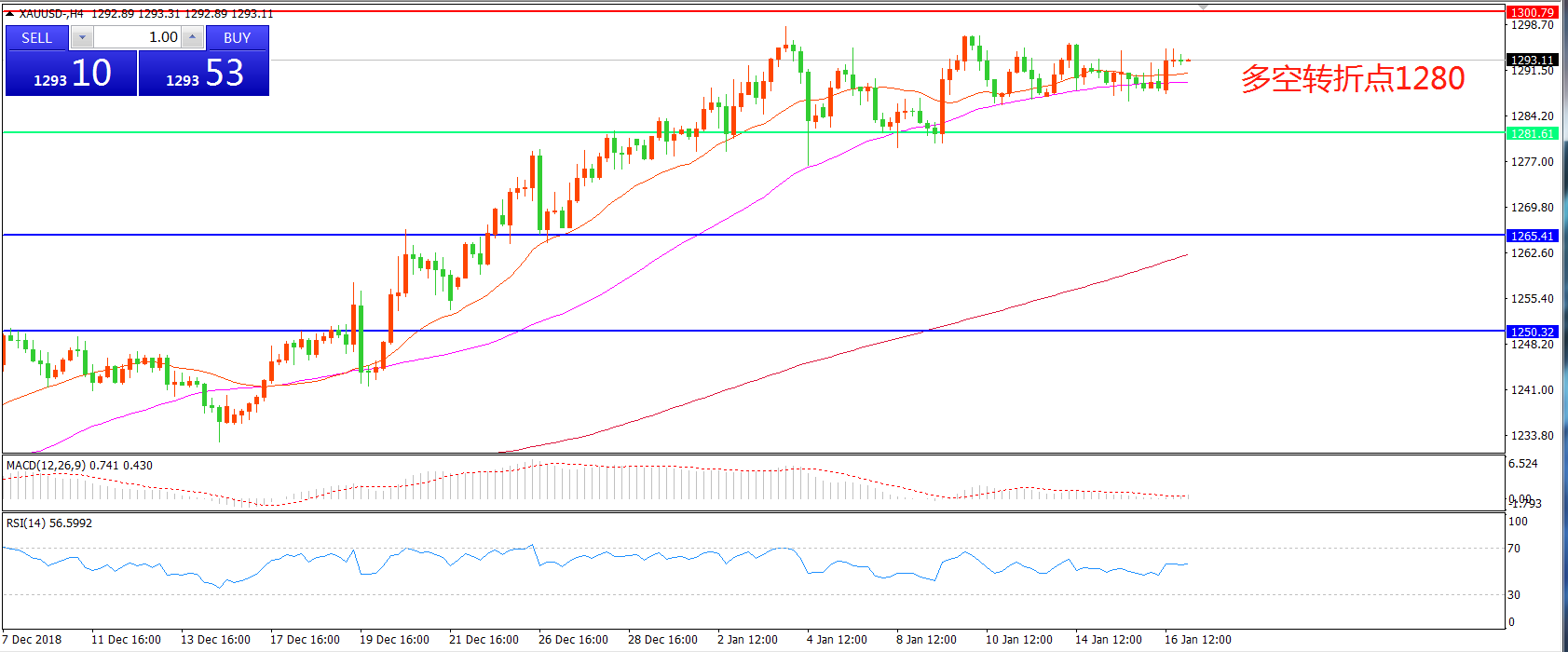 英国反对党工党领袖杰里米•科尔宾周二在国会议员对特蕾莎梅的英国脱欧协议否决后,提出于格林尼治标准时间1900年举行对政府的不信任投票。英国将于3月29日离开欧盟,由于英国未能与欧盟达成协议退出的可能性增加,以及美国政府继续部分停摆,这有助于保持金价的继续上行。现货黄金收涨0.4%,报1293.80美元/盎司