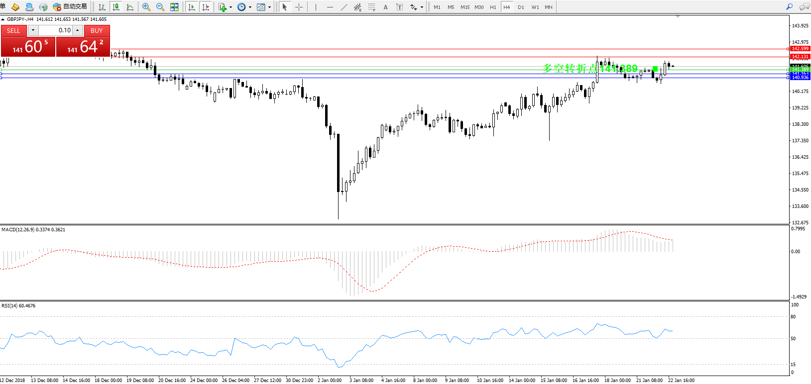 交易策略:141.389上方看涨,目标142.131、142.599