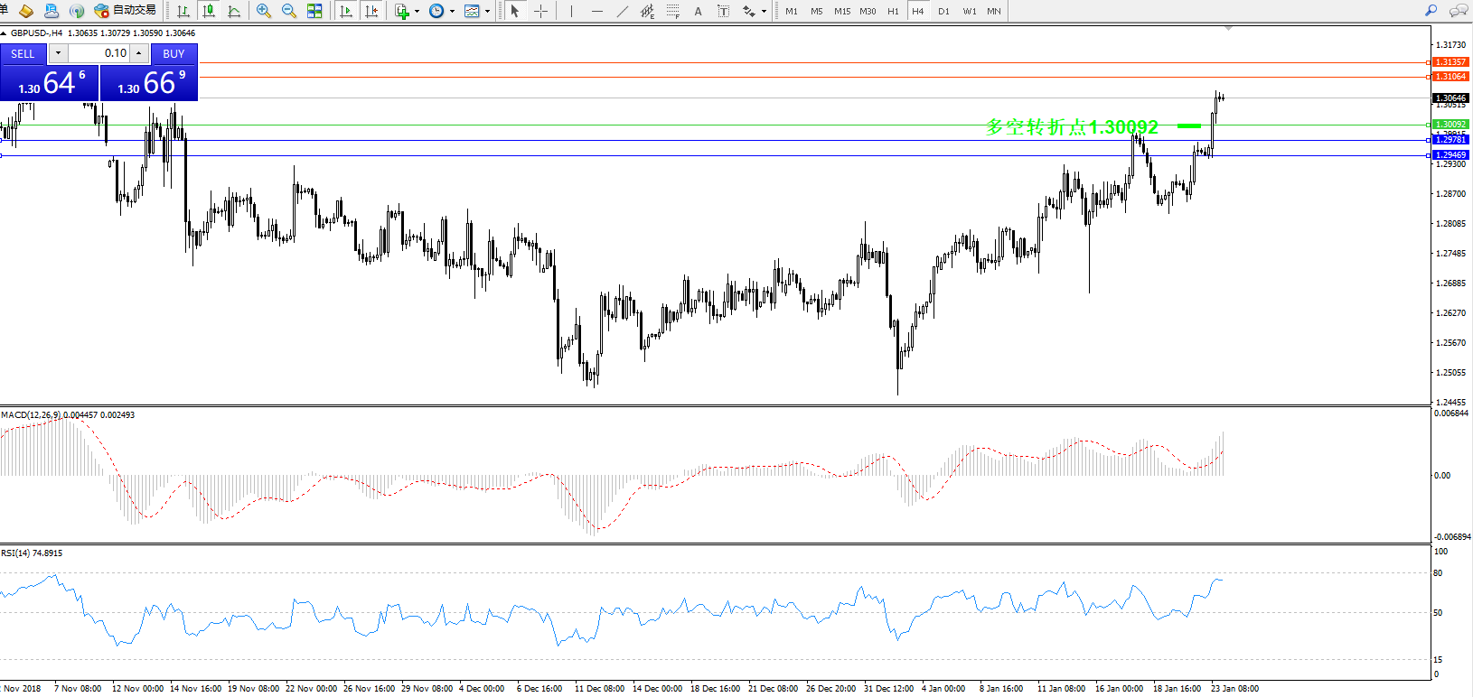 交易策略:1.30092上方看涨,目标1.31064、1.31357