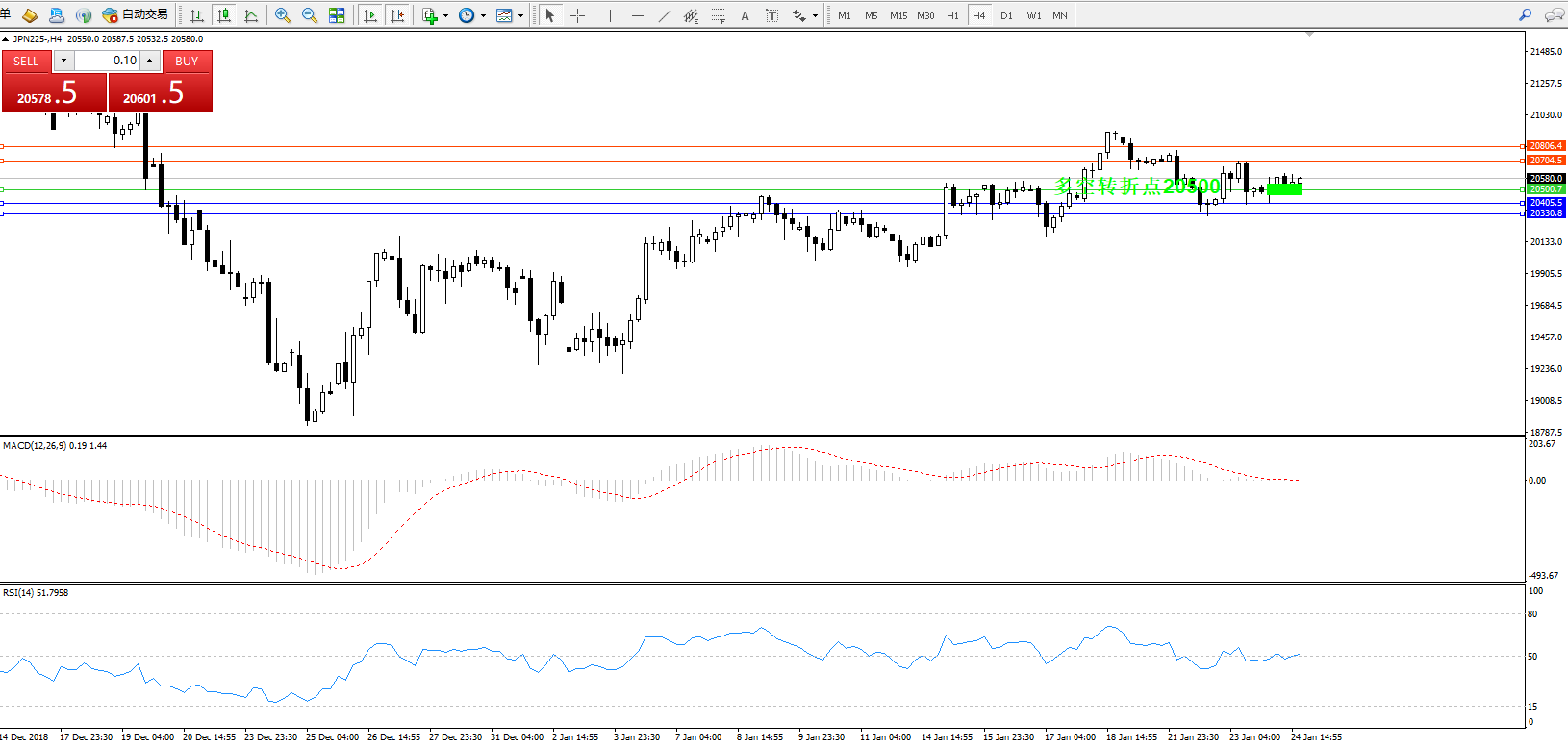 日经指数JPN225——4小时K线图: